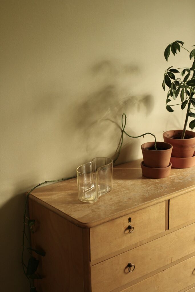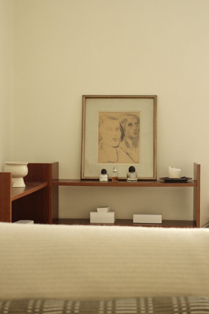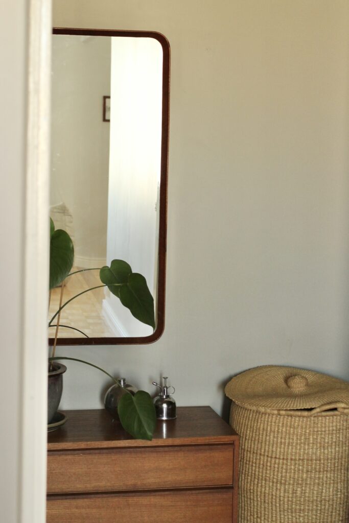 Makuuhuoneisiin halusimme luoda rauhoittavaa tunnelmaa ja valita hieman syvemmän maalisävyn, joka toimisi kokonaisuutena kodin muiden pintojen kanssa. Päädyimme maalaamaan seinät sävyllä Sandstone Beige, joka tuo huoneisiin juuri oikean määrän lämpöä ja täyteläisyyttä. Tumma beige taittaa aavistuksen vihreään etenkin auringon paistaessa makkareihin, mikä oli positiivinen yllätys.
