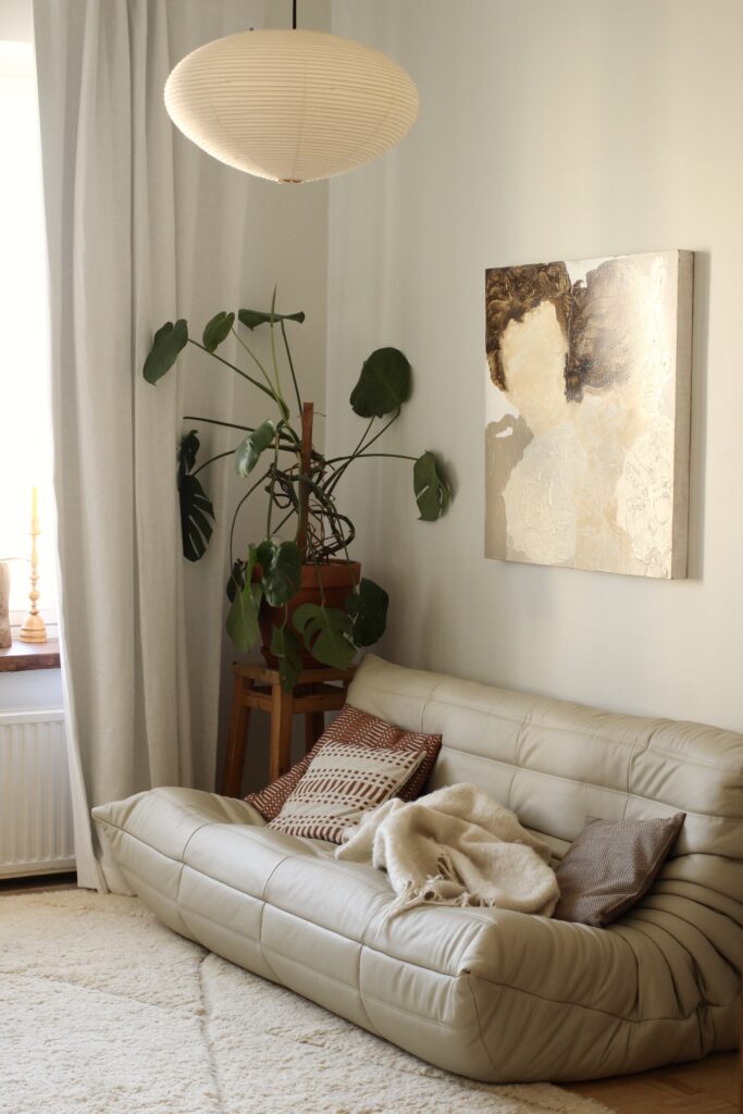 Milieun valikoimasta olisi löytynyt useampiakin kriteereihimme sopivia maalisävyjä, mutta päädyimme lopulta Cream White ja Sandstone Beige -sävyihin, jotka matchasivat täydellisesti toiveeseemme lämpimästä ja kotoisasta tunnelmasta.